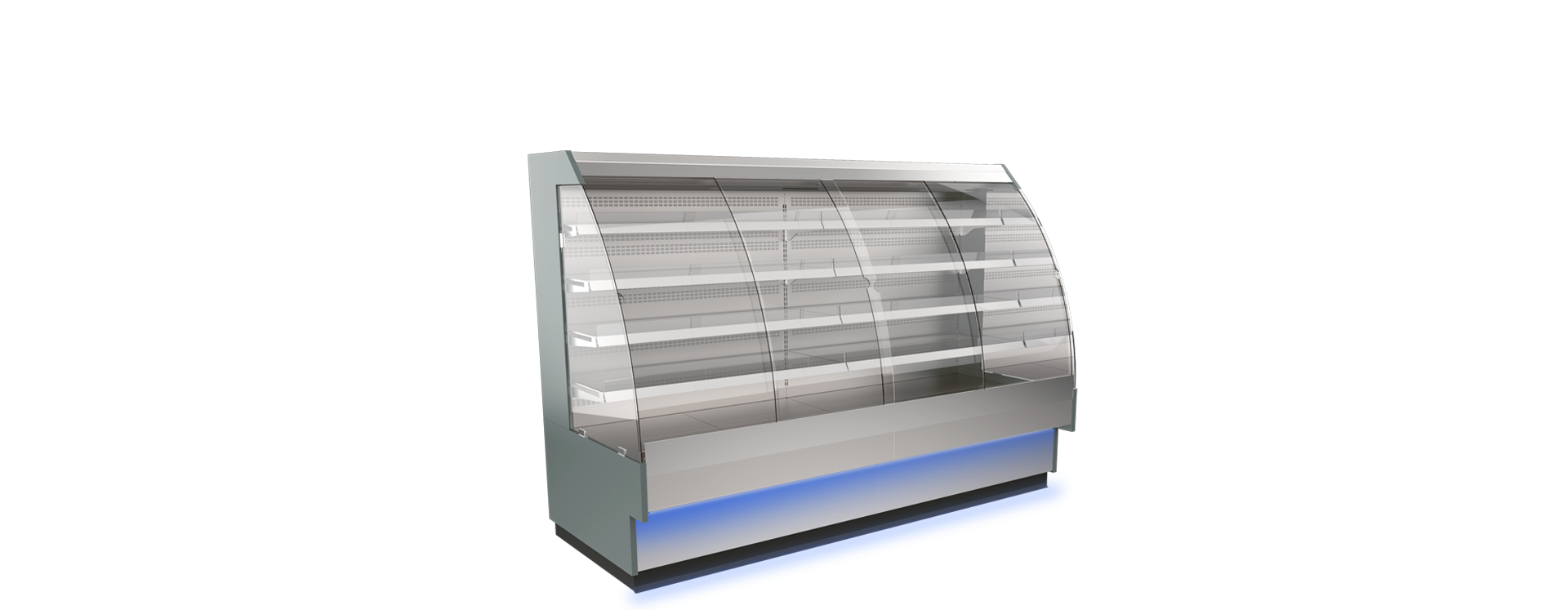 Healthy and fresh food for everyone. Without compromise in fresh presentation. That is what Smeva stands for. Meet the closed Fjorda semi-vertical with glass doors. A contemporary sustainable refrigerated display case with energy-saving sliding glass doors, without compromising your product presentation.
