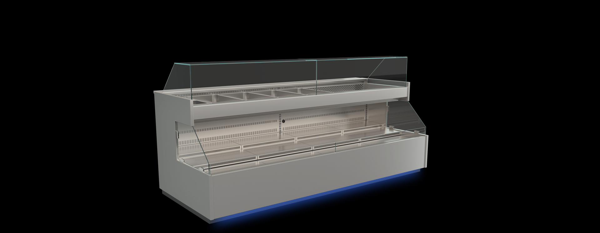 Interior: | Stainless steel (304L). Possibility of creating a cascaded presentation platform with optional inserts. |