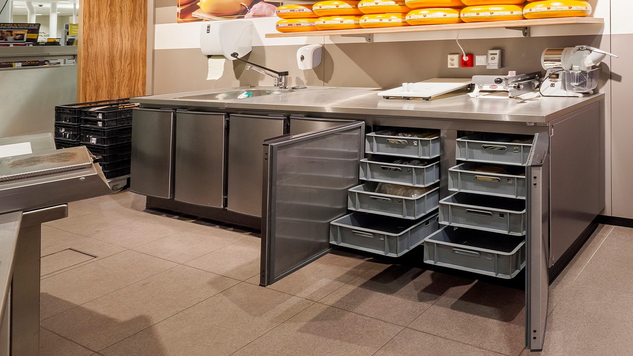 The refrigerated understorage or refrigerated workbench is a very practical cooling that offers you a lot of extra storage space. It is assembled modularly in two heights and can therefore be used flexibly in any store setting. With this practical refrigerated workbench, Smeva helps you to present and store as many fresh products per m2 possible.