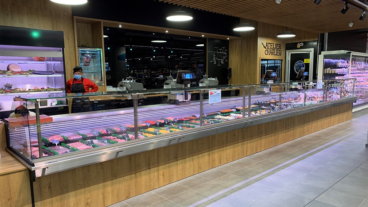 The Vision MKll was originally designed by Smeva as a meat presentation counter, but with the special cooling technology this unit is also highly suitable as a fish chilled display counter or cheese display counter. Thanks to the diverse design options, modular composition and corner variants this unit fits in any shop design and store concept. The opportunity to add a self-service component in the same modular build and look & feel complete your store.