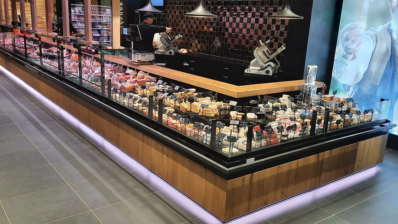 The Vision MKll was originally designed by Smeva as a meat presentation counter, but with the special cooling technology this unit is also highly suitable as a fish display counter or cheese display counter. Thanks to the diverse design options, modular composition and corner variants this unit fits in any shop design and store concept. The opportunity to add a self-service component to the original Vision MKll serve-over counter, in the same modular build and look & feel, completes your store.