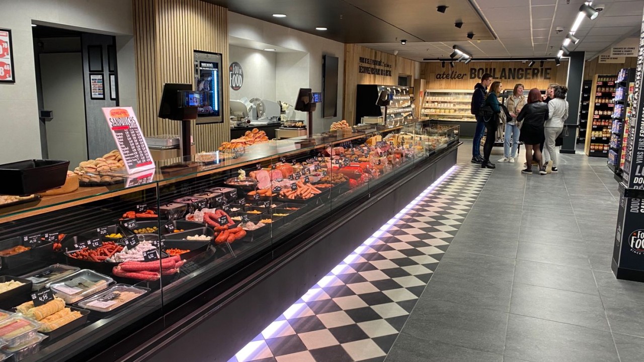 Smeva supplied AD Delhaize Dolhain with a Vision MKll refrigerated counter with panoramic glass construction for optimum visibility of the meat products. The meat counter is also completely sustainable and very energy-efficient, because it is cooled with the natural refrigerant glycol.