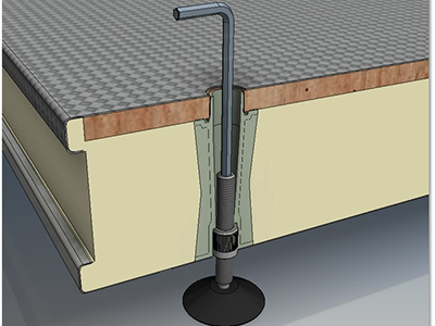 Vloerconstructie: | Op kunststofbalkjes (20 x 57 mm) om de 500 mm geplaatst Alternatief de gepatenteerde stelvoetconstructie (stelbereik van 45 mm, draagkracht per stelvoet is 450 kg) |